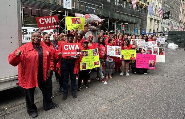 Bird Union (CWA Local 1180) members rallied for pay equity in New York City.