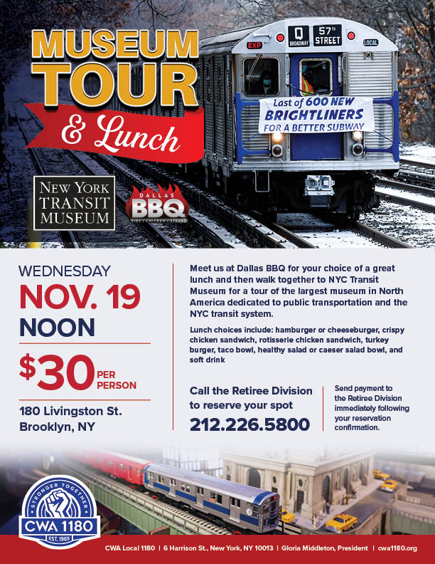 Call the Retiree Division to reserve your spot today: 212.226.5800